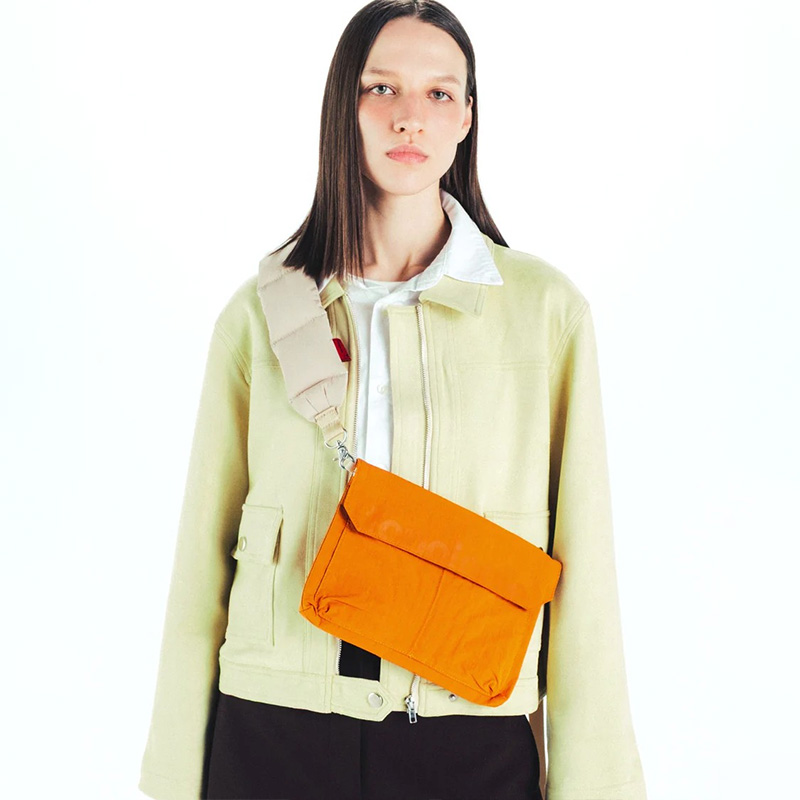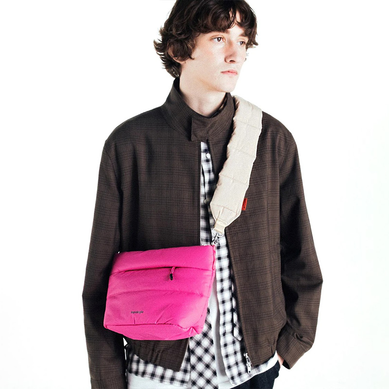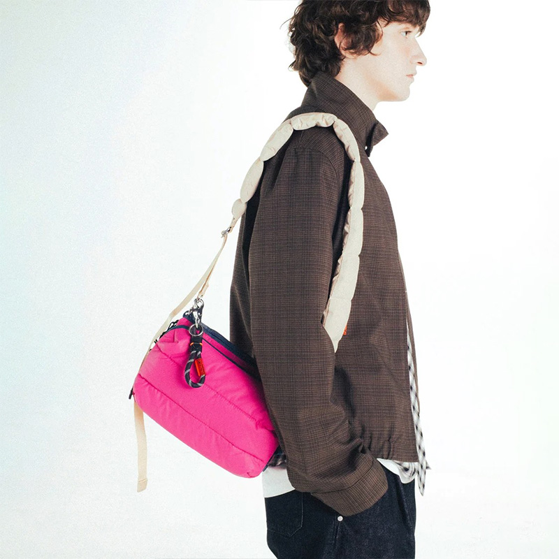 Topologieの機能性とファッションの完璧な融合を体現するPuffer Strapは、ふくらみがありながらもミニマルなシルエットとソフトな質感が特徴。