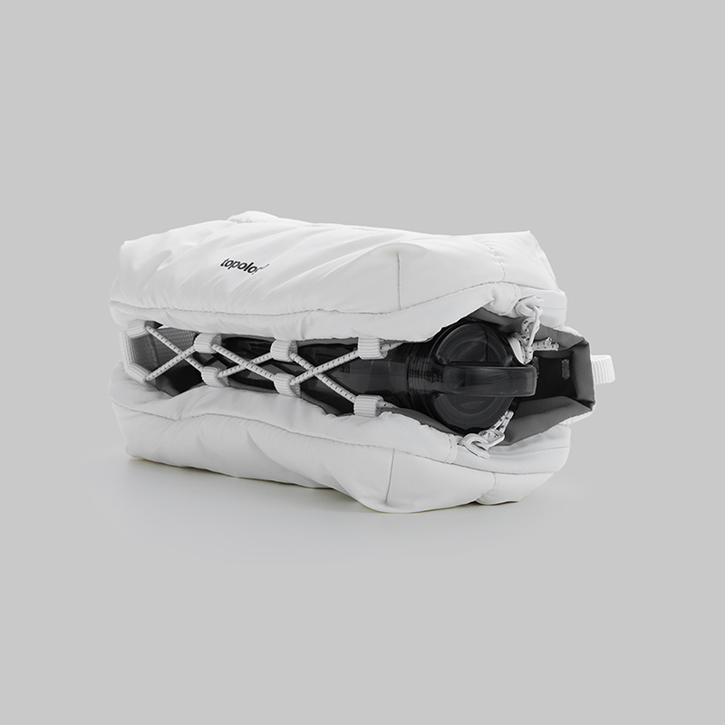 ブランドの核となる“Co-Creation(共創)”から生まれた「Topologie Wares System™」では、120種類以上のストラップと1,000通りを超える組み合わせにより、自分だけのスタイルを自在にカスタマイズできます。タンブラーボトルと、スマートフォンやキー、財布などの持ち物も含めて便利に収納・持ち運びするためのサスティナブルなポーチ。