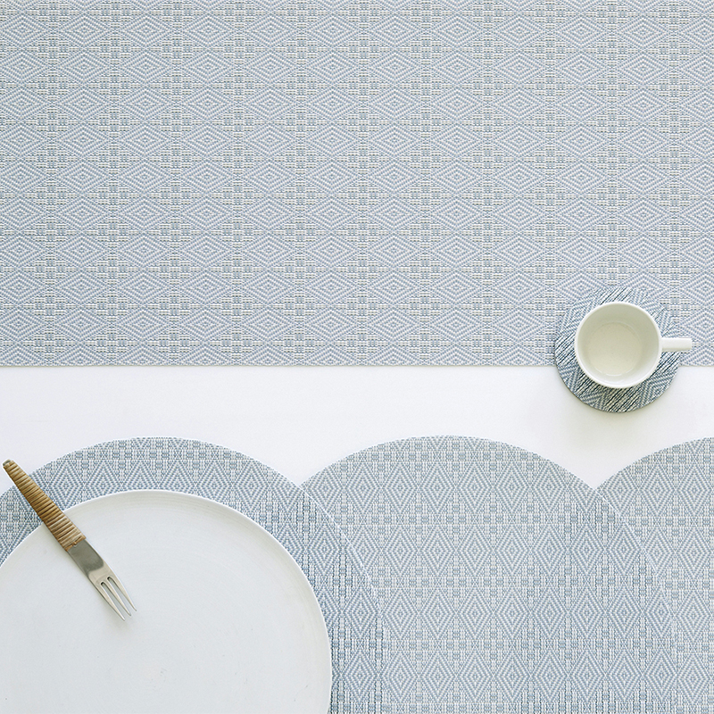 1本の糸に複数の色を使う「バイカラー」を駆使し、柄ごとに糸を開発。2000年に世界で初めて、塩化ビニル素材のプレイスマットを開発し、世界中で大きな反響となり、以降、年2回の新コレクションを発表し、デザイン賞を多数受賞しています。ニューヨークを拠点に活躍するデザイナー Sandy Chilewich(サンディー・チルウィッチ)によるプレイスマット。