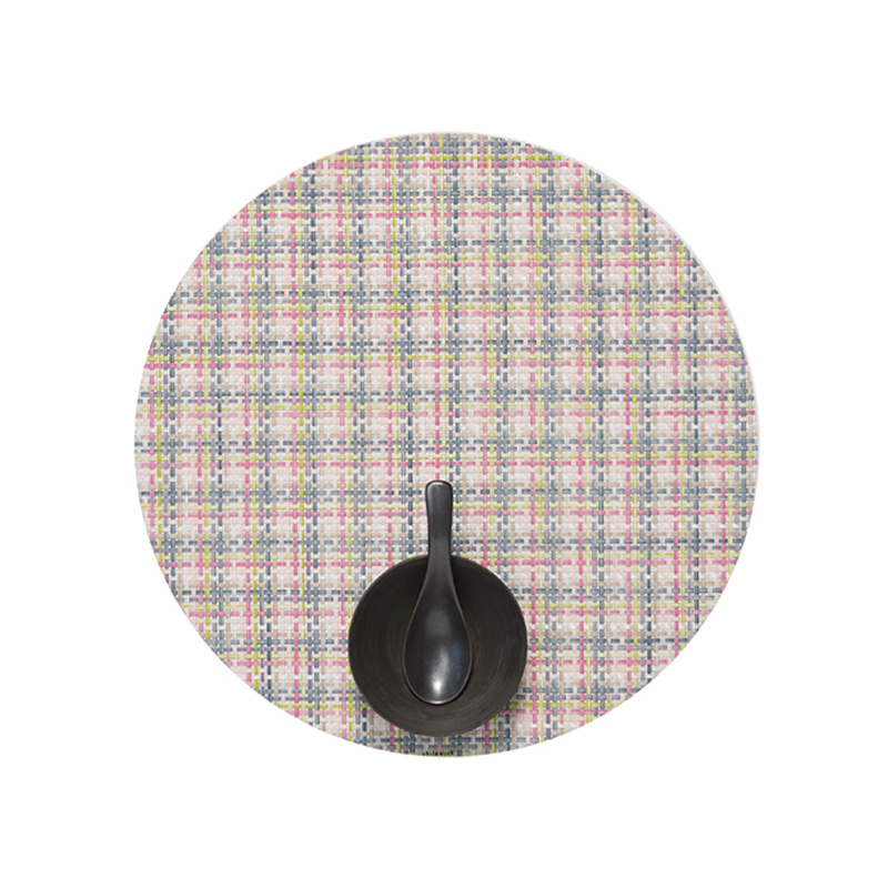 1本の糸に複数の色を使う「バイカラー」を駆使し、柄ごとに糸を開発。2000年に世界で初めて、塩化ビニル素材のプレイスマットを開発し、世界中で大きな反響となり、以降、年2回の新コレクションを発表し、デザイン賞を多数受賞しています。ニューヨークを拠点に活躍するデザイナー Sandy Chilewich(サンディー・チルウィッチ)によるプレイスマット。