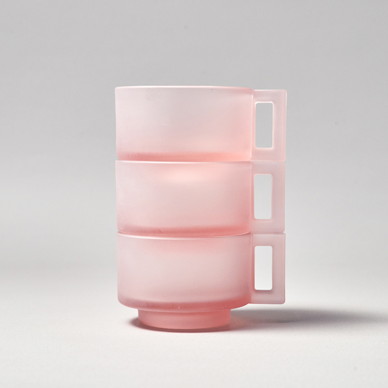 ピンクのすりガラスが柔らかい印象です。ARNO GLASSの美学を体現するこのセットは、視覚的な美しさと整然とした佇まいをもって、日常の空間に心地よい秩序をもたらします。