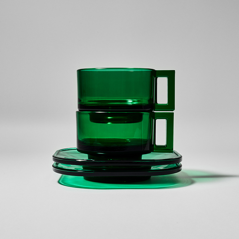鮮やかなグリーンがテーブルを華やかにします。ARNO GLASSの美学を体現するこのセットは、視覚的な美しさと整然とした佇まいをもって、日常の空間に心地よい秩序をもたらします。