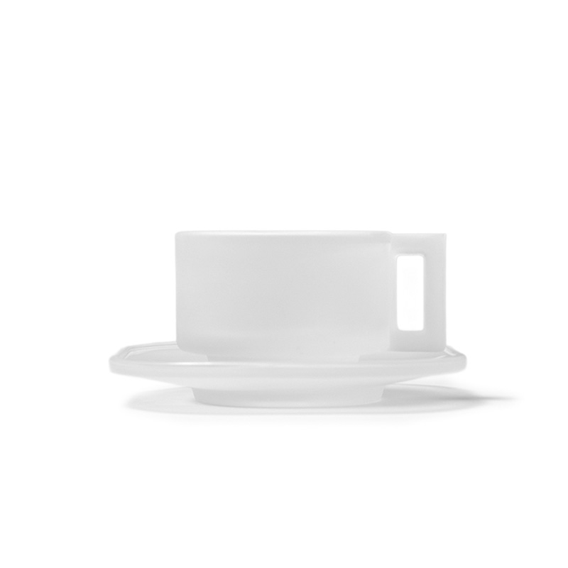 実用的なスタッキング構造とエッジの効いたハンドルデザインを備えた、200mlのカップ&ソーサーセット。