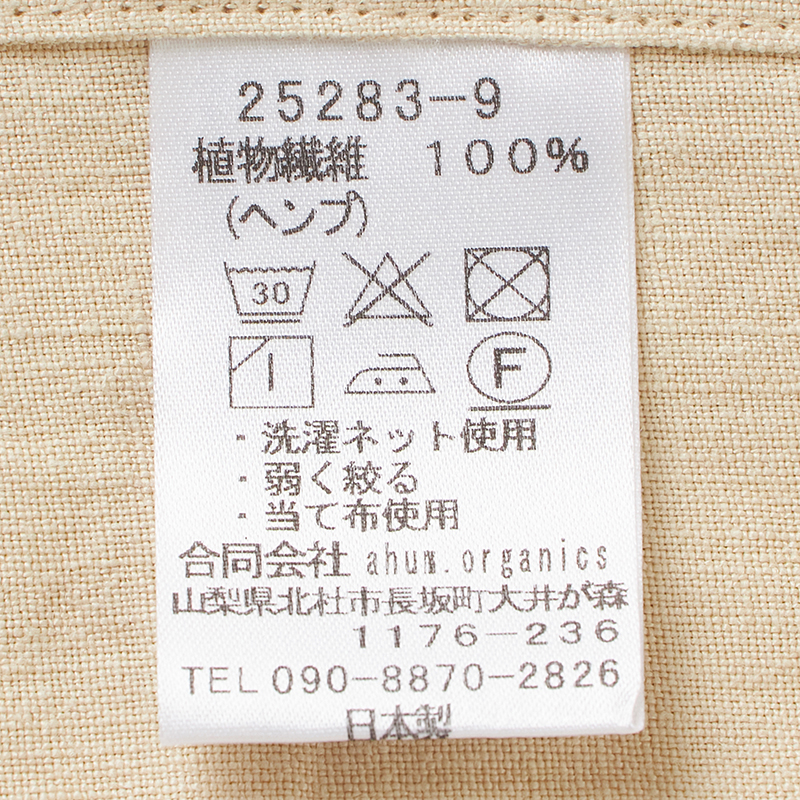 ヘンプ生地は酵素洗浄で仕上げられており、植物由来の酵素で、繊維の奥まで丁寧に洗浄し、不要な成分をやさしく取り除いています。