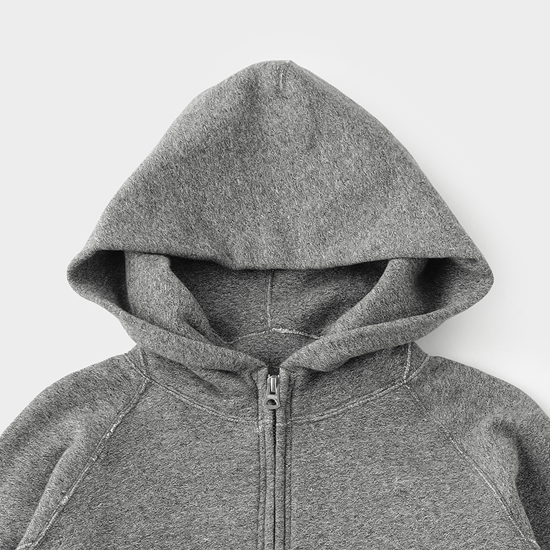 袖口と裾のフライスはやや長めに設定し、ヴィンテージスウェットを意識したデザインに仕上げています。シルエットはベーシックで、幅広いスタイルに合わせやすいプレーンな型です。