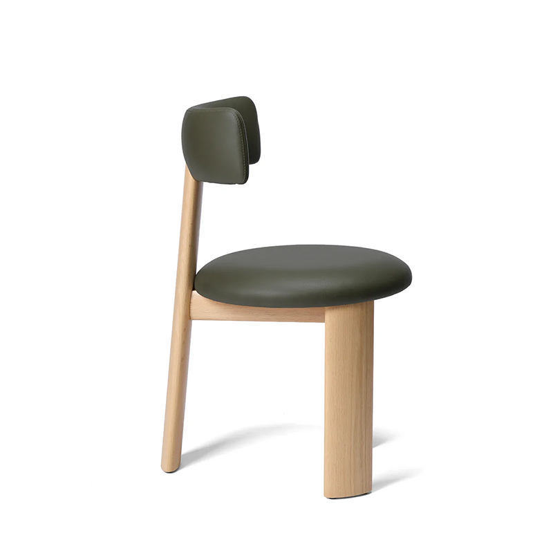 太めの木材を用いながらも、脚を三本にすることで重たさを感じさせないバランスを実現。柔らかな曲線を描くアイコニックなシルエットが、彫刻のような造形美を際立たせ、空間に軽やかな存在感をもたらします。