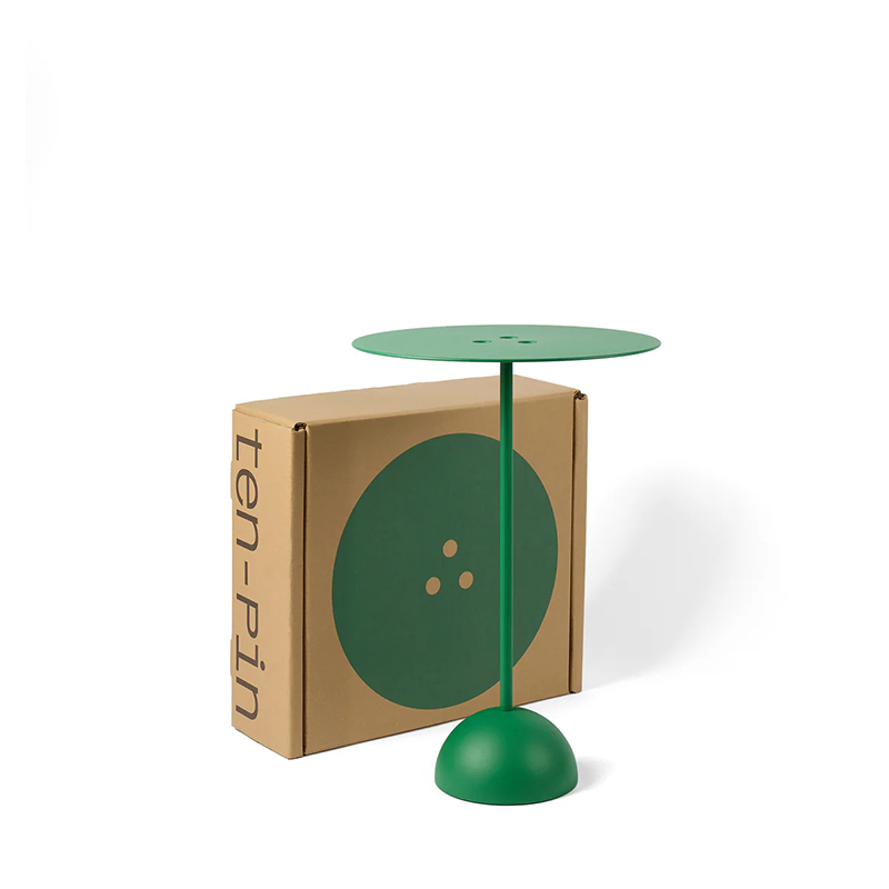 ボウリングボールを握るときの直感的な動作から着想を得たデザインで、持ち運びやすさを考慮した3つの穴がユニークなアクセントに。