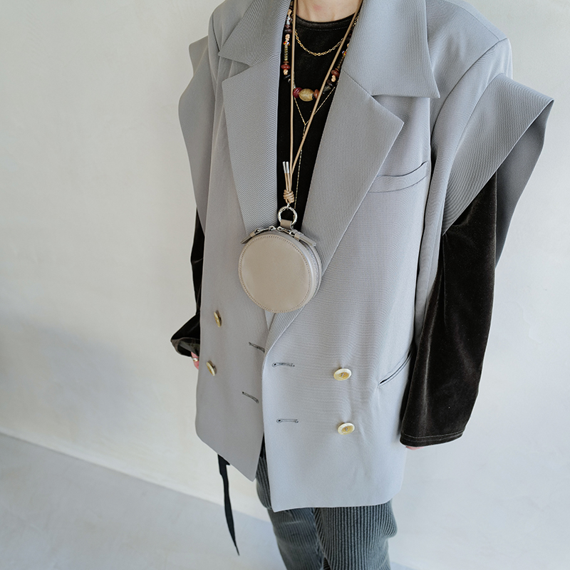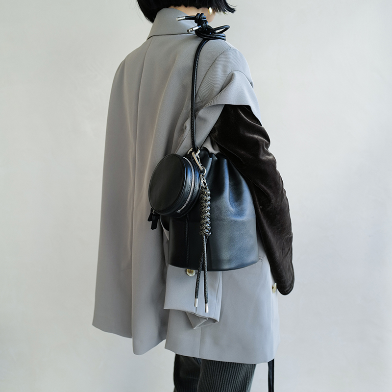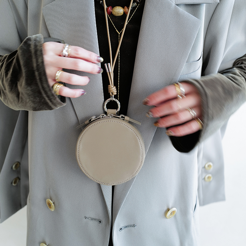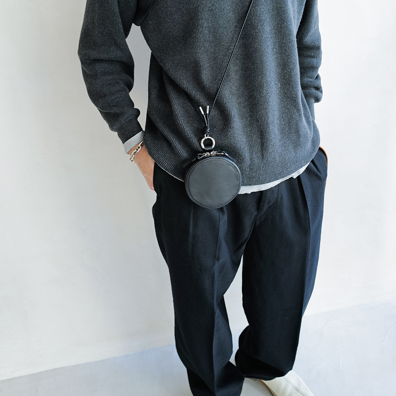 セカンドライン〈ITTI HOME〉で人気を博したサークルポーチをベースに、細部まで見直し、あらたにパターンから設計したミニバッグ。