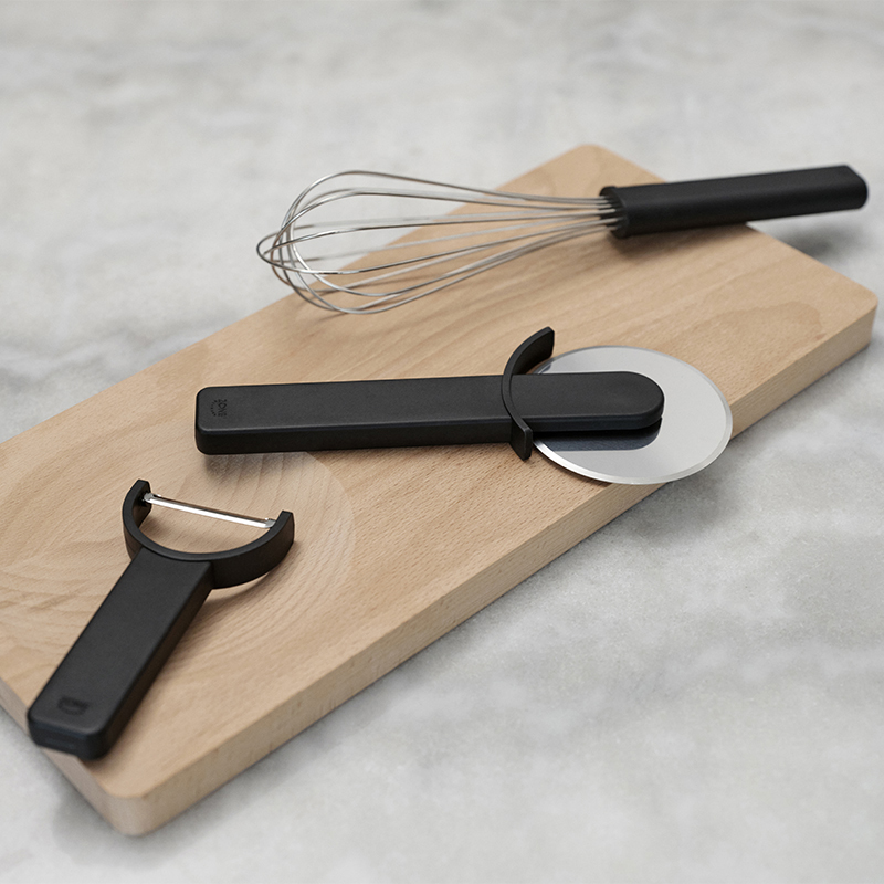 その哲学はブランドの根幹に息づき、数々のデザイン賞を受賞しています。握りやすいハンドルで、厚めの生地もクリスピーな生地も、具がたっぷりのピザでもしっかりカットできるピザカッター。