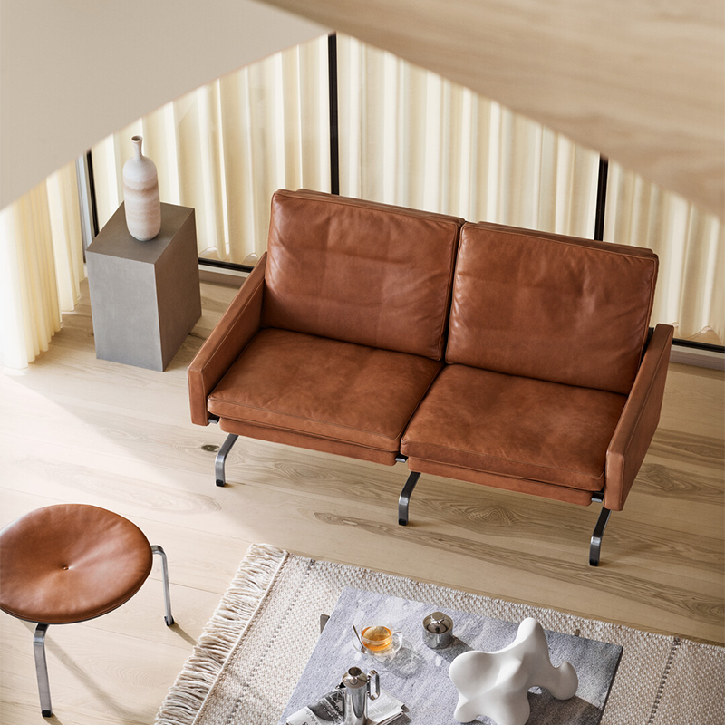 同シリーズのラウンジチェア「PK22?」とともに設計され、低めのフォルムが空間に開放感と洗練された印象をもたらします。