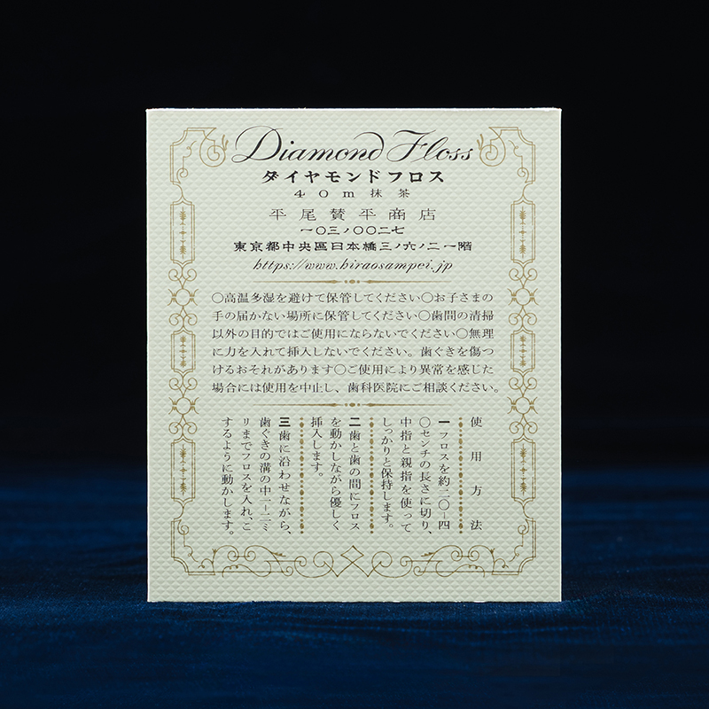 「ダイヤモンドフロス」は、平尾賛平商店が1891年(明治24年)に販売した歴史的製品「ダイヤモンド歯磨」からその革新性を受け継ぎ、歯科医師監修の下開発されました。