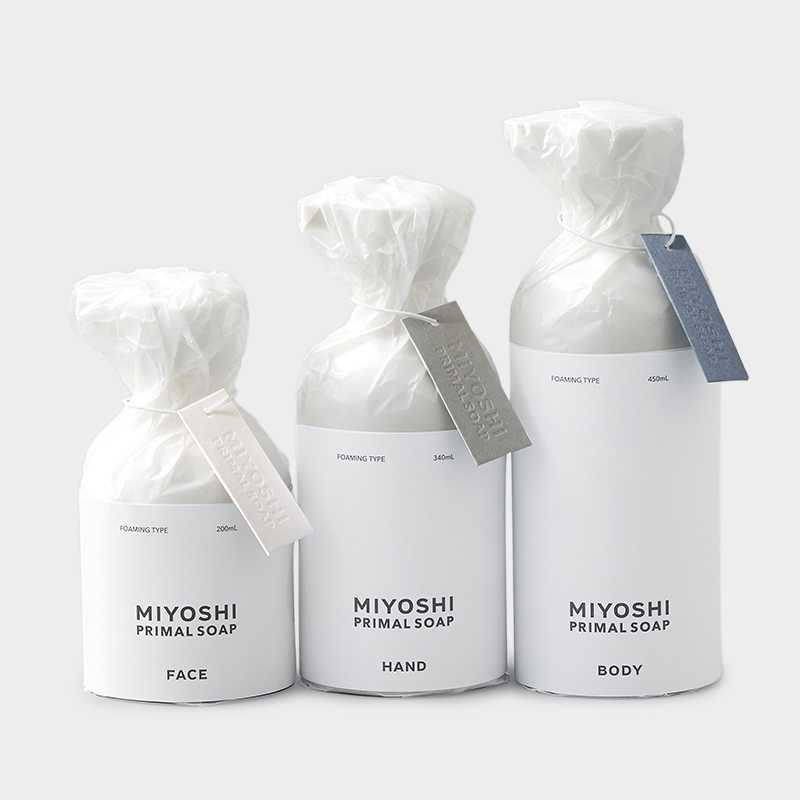 紙ラベルの内側には、写真家・岩倉しおりさんの作品と、詩人・文月悠光さんの詩を印刷しています。どの作品が現れるかはランダムです。どうぞ、開封のひとときもお楽しみください。洗浄成分 / 100%純せっけん。
