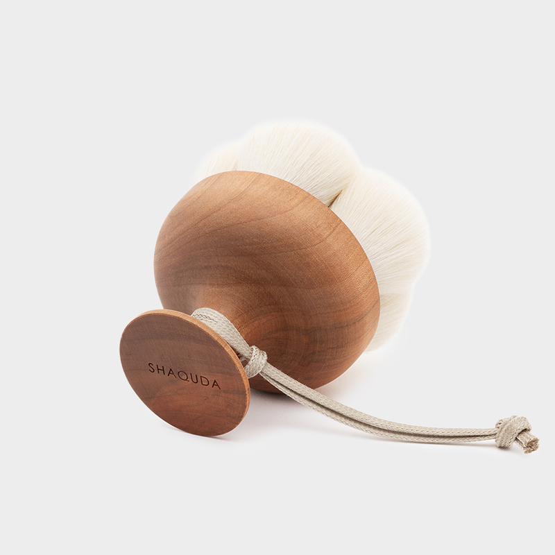 乾いた状態では、ドライブラッシングでのボディトリートメントに。濡らして石けんをつければボディの洗浄にも。繊細な天然毛が全身をやさしく洗い上げます。