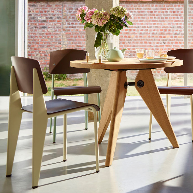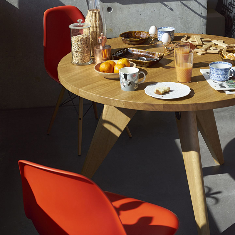 安定性を保つための各パーツのサイズ、プロポーション、デザインなどはそのビジュアルの上でも重要な要素として機能しており、「美しいものは必要から生まれる」というジャン・プルーヴェの信条を如実に感じることができるでテーブルです。