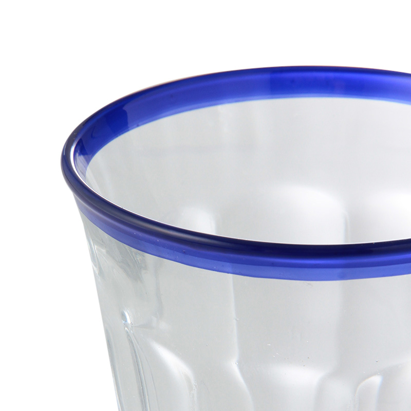 リム部分をコンランブルーにディップ加工した、涼しげな雰囲気が漂うオリジナルグラス。