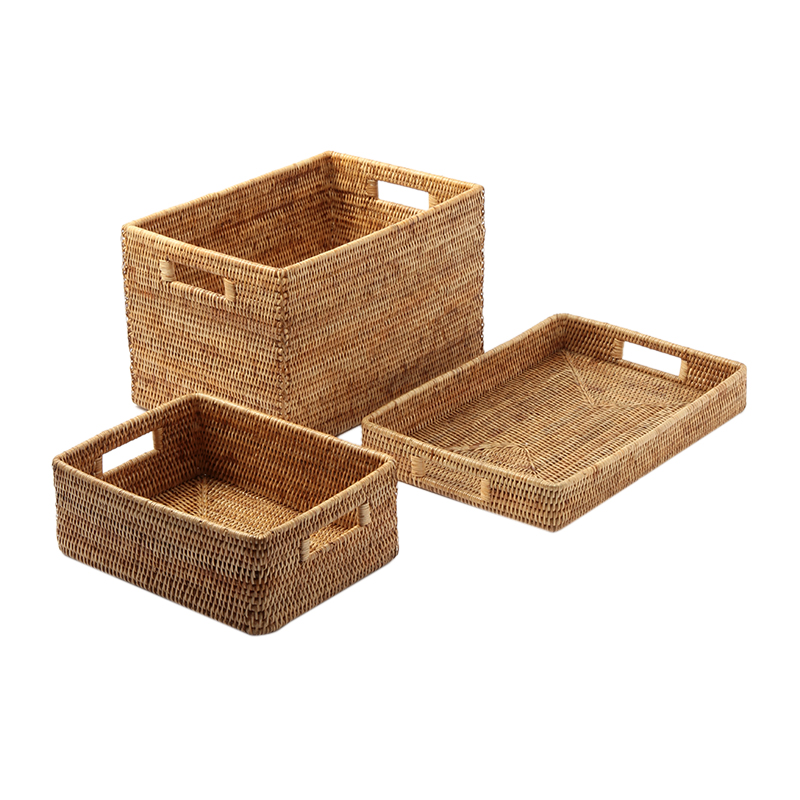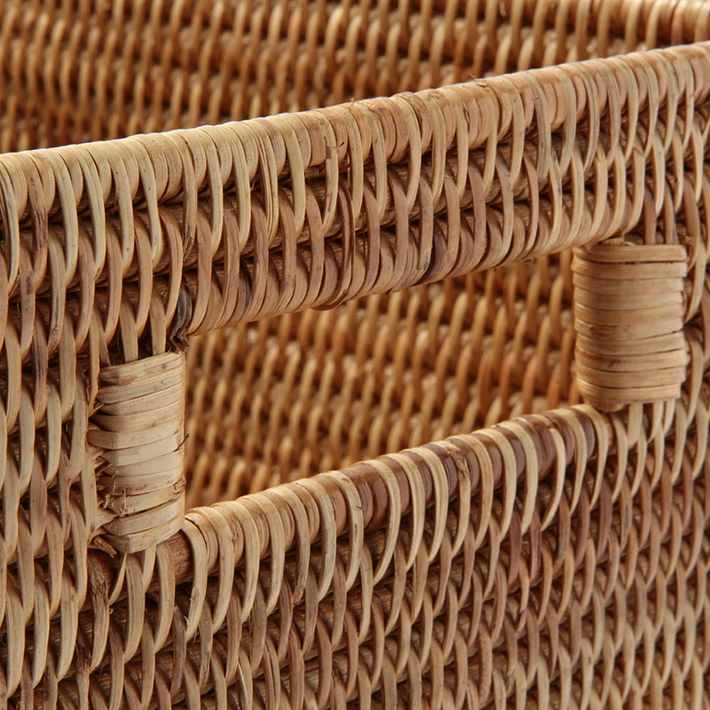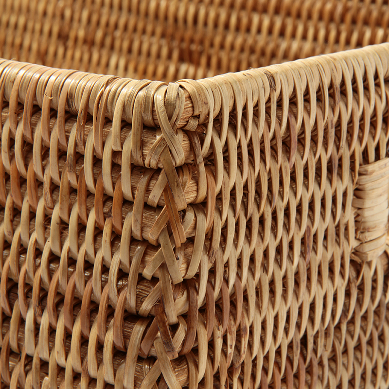 そのまま床置きでも棚に入れても様になる、ラタンのナチュラルな風合いが魅力です。